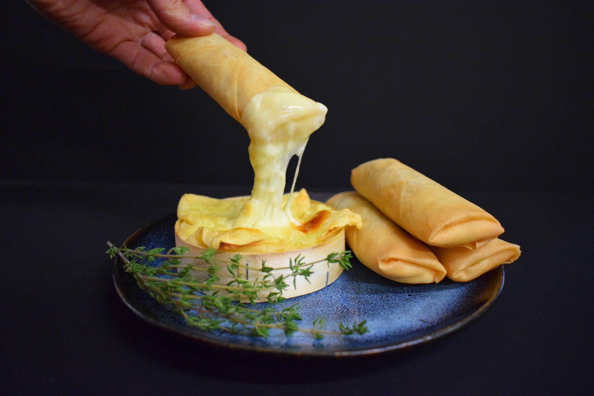Knusprige Röllchen, gefüllt mit Spinat, Ziegenkäse und Knochlauch
