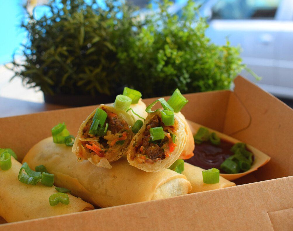Knusprige Röllchen, gefüllt mit gesmoktem Fleisch, Cole Slaw und Gemüse.